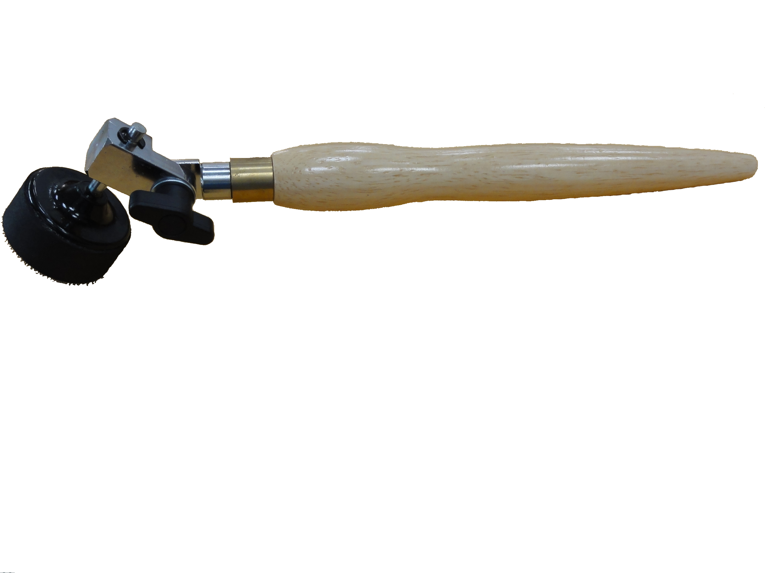 This new sanding device is powered by applying it’s rotating sanding head to the stock at an angle to start it rotating. The advantage of the bowl sander is that the rotating head does not leave straight abrasive marks around the work like hand held sandpaper. Works with 2" hook and loop sand paper disc. The head of the sander tilts to allow access to hard to reach of the turning.